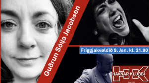 Dansur og tiltøk Altíð sera gott undirhald og dansur í Havnar Klubba! Mikudag: 19.00-22.00Fríggjadag: Fimmarin fyri limir 17.00-20.00Onnur tiltøk frá kl. 20.00-Leygarkvøld:Dyrnar lata upp kl. 21.00KlubbaQuiz: 21.30-23.30Dansur: 23.30-03.45Sí skrá niðanfyri. 4. oktober spæla: REYN 11. oktober spæla: TÓNAR 18. oktober spæla: Chill 25. oktober spæla: Sommerson Band Leygarkvøldið 3. januar Dansur við Næturljóð kl. 23.30KlubbaKviss frá kl 21.30 Fríggjakvøldið 9. januar Konsert við Guðrun Sólju Jacobsen kl. 21.00 Leygarkvøldið 10. januar Dansur við Flemming og vinmenn kl. 23.30 KlubbaKviss frá kl. 21.30 Leygarkvøldið 17. januar Dansur við Brim frá kl. 23.30KlubbaKviss frà kl. 21.30 Leygarkvøldið 24. januar Dansur við Amigos frá Kl. 23.30KlubbaKviss frà kl. 21.30 Leygarkvøldið 31. januar Dansur við Blitz kl. 23.30KlubbaKviss frà kl. 21.30